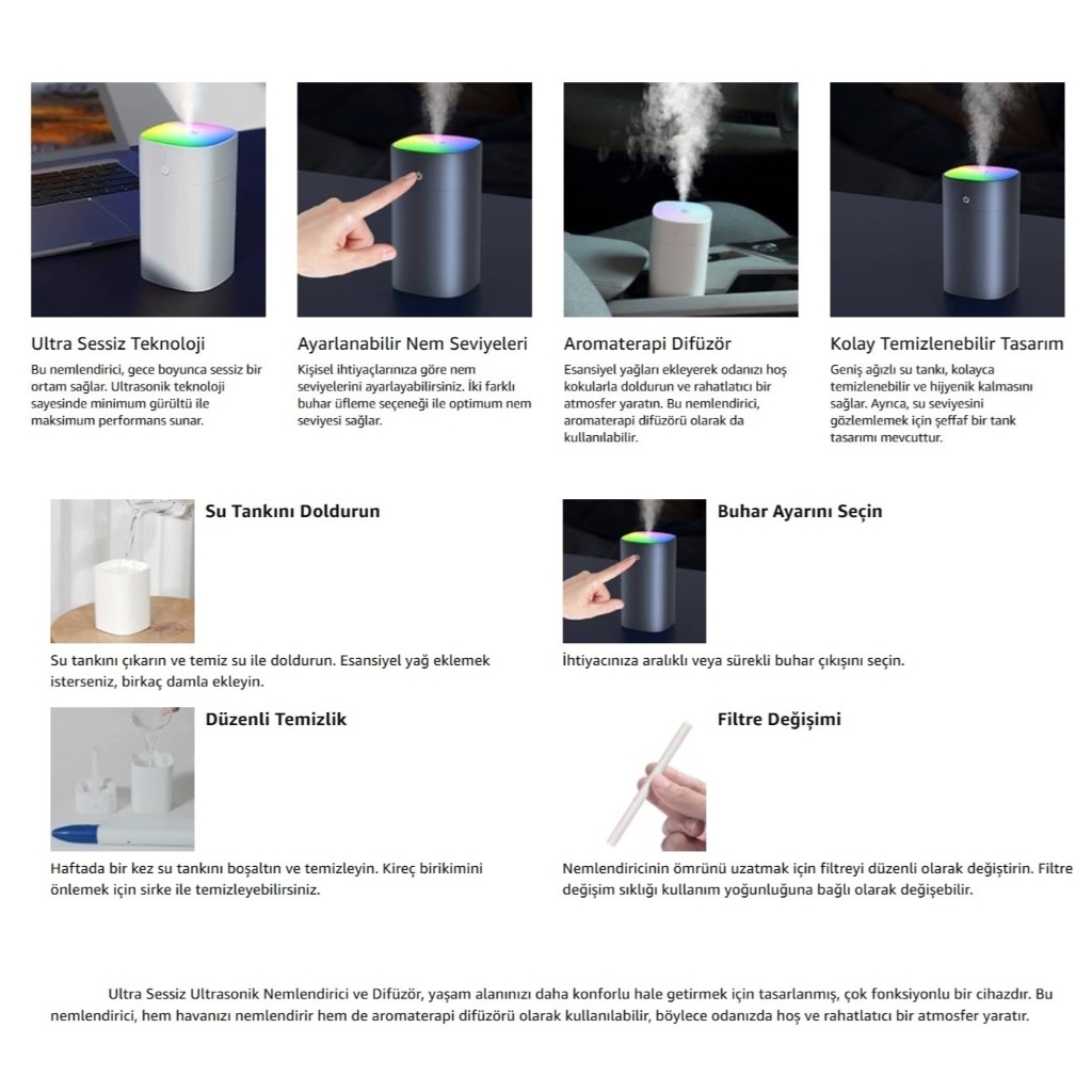 - Soğuk Buhar Üretimi: Kaynar su kullanmadığı için çocuklu evler için güvenlidir.
